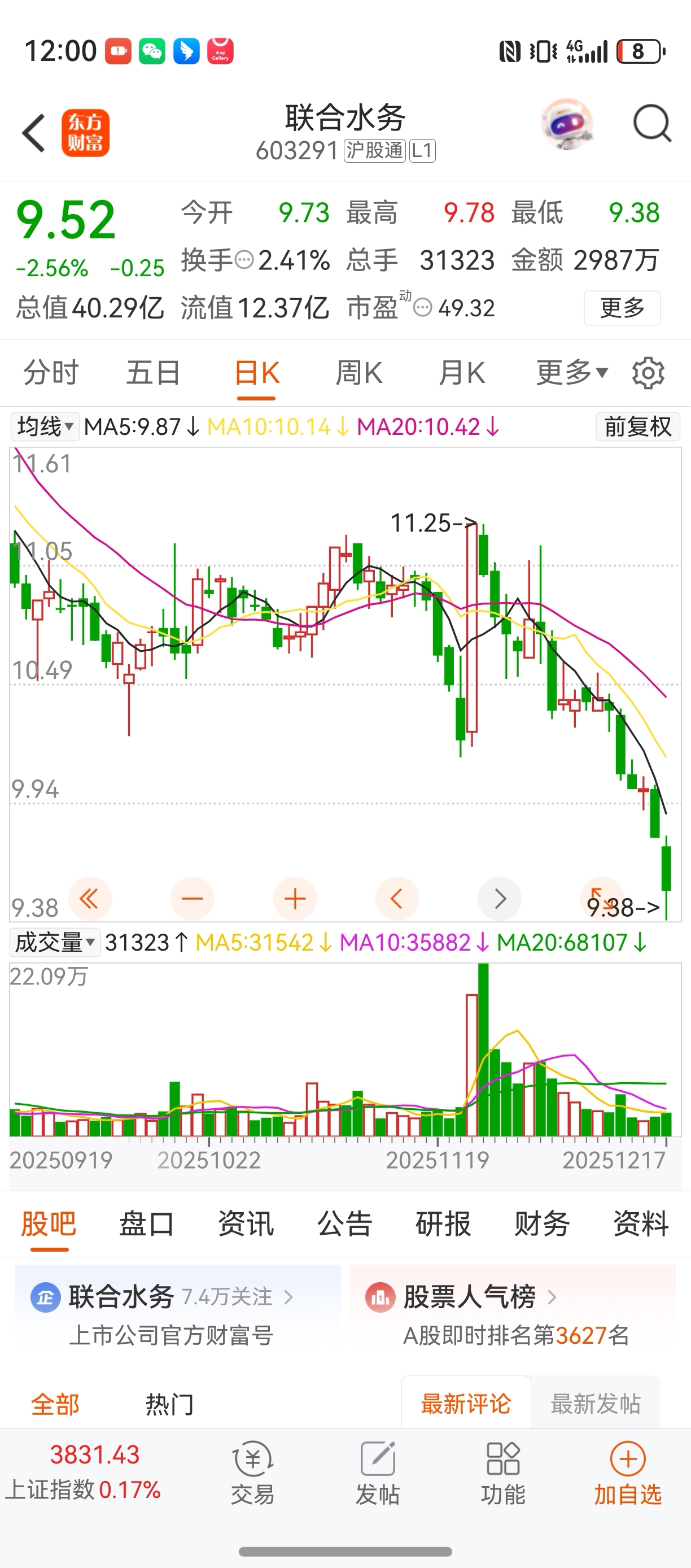 $国中水务(SH600187)$ 联合水务 涨停后一路下跌