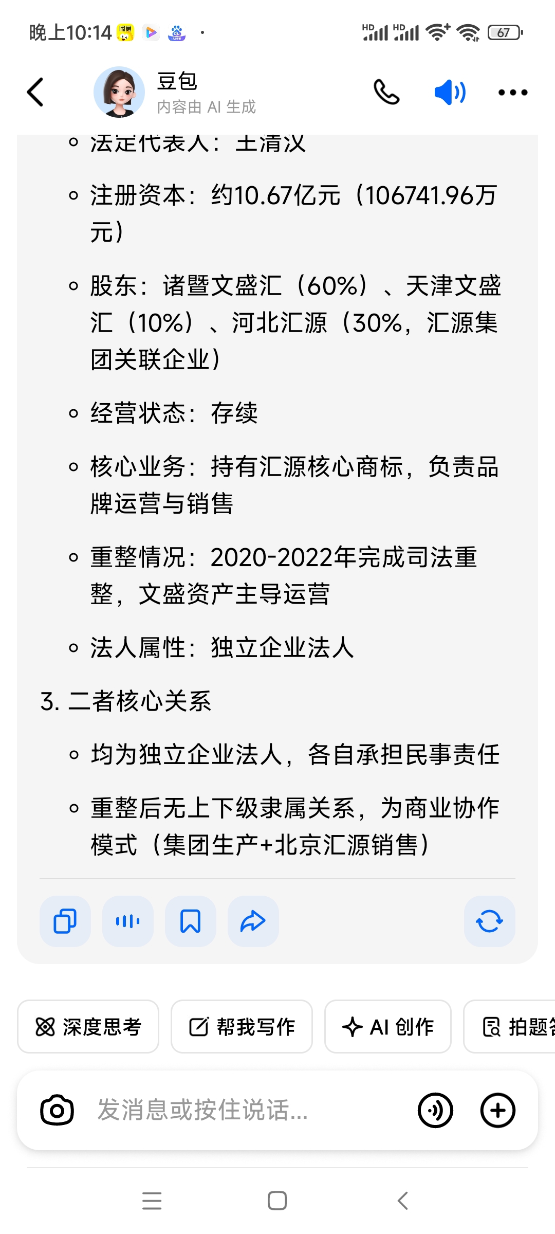 北京汇源作为重整的主体,在谁手上才是关键,不是汇源集团说了算,也不是文盛说了算,而是法院说了算。