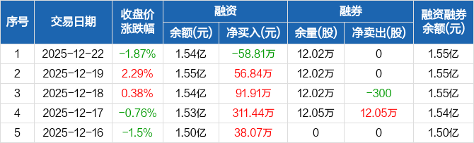 国中水务:融资净偿还58.81万元,融资余额1.54亿元(12-22)