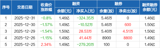 国中水务:融资余额1.46亿元,创近一年新低(12-31)