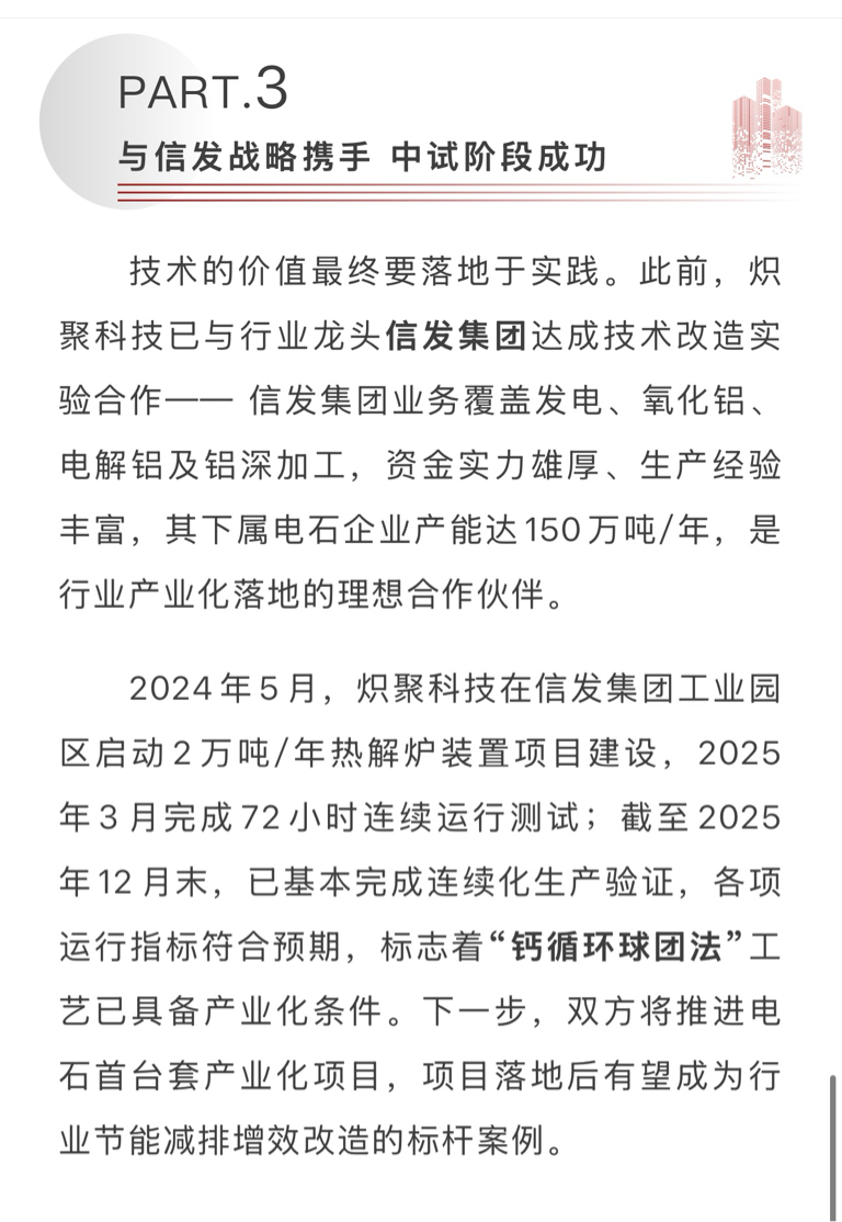 国中水务控股子公司——北京炽聚科技有限公司(以下简称“炽聚科技”)近期在电石节能