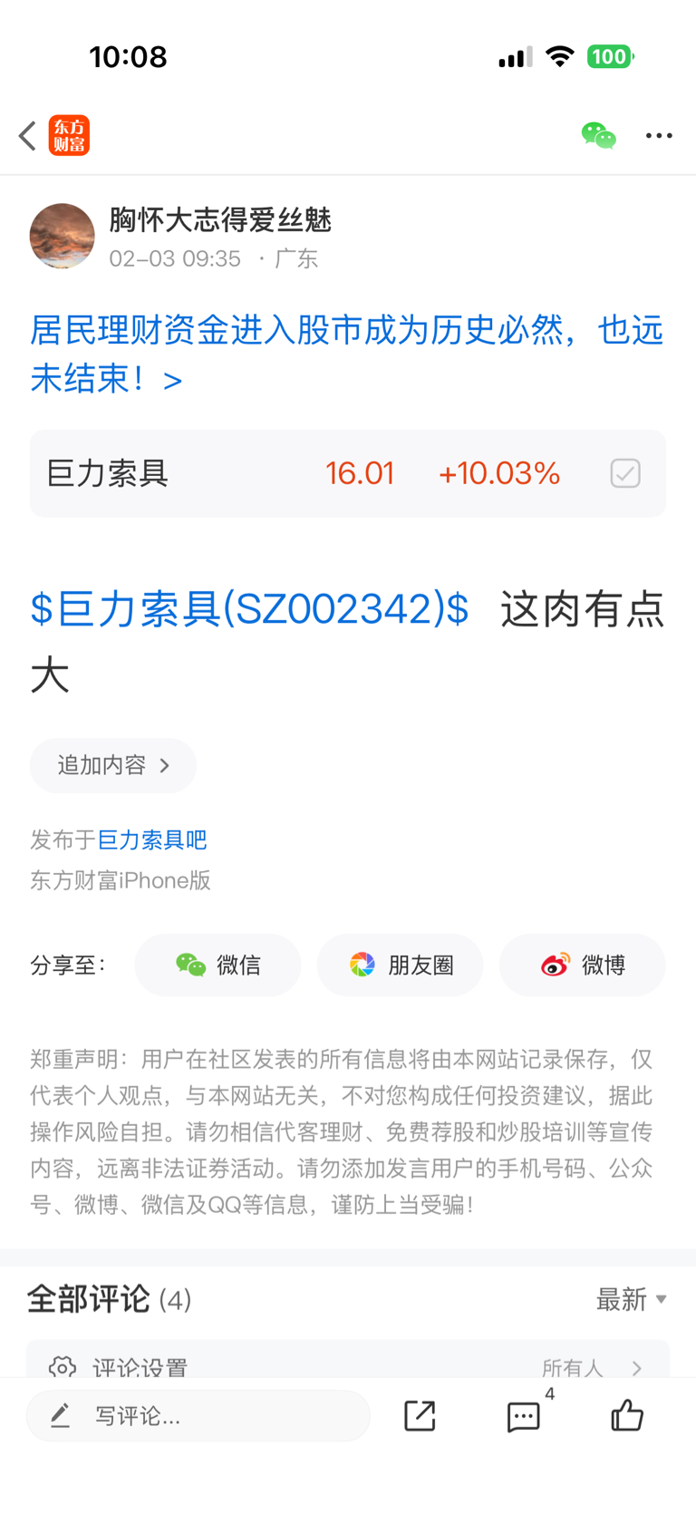 温馨提示: 1.根据《证券法》规定,禁止编造、传播虚假信息或者误导性信息,扰乱证券市场;2.用户在本社区发表的所有资料、言论等仅代表个人观点,与本网站立场无关,不对您构成任何投资建议。用户应基于自己的独立判断,自行决定证券投资并承担相应风险。《东方财富社区管理规定》