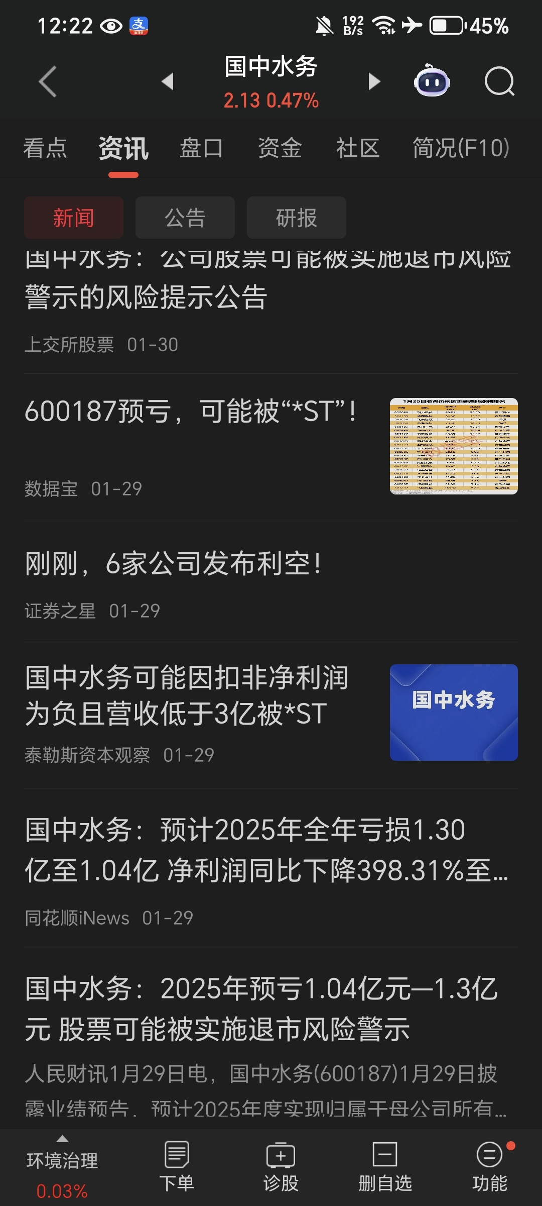 $国中水务(SH600187)$ 唱多的托儿,你有什么理由唱多,退市风险就在眼前,你凭什么?你别忽悠散户接盘了!