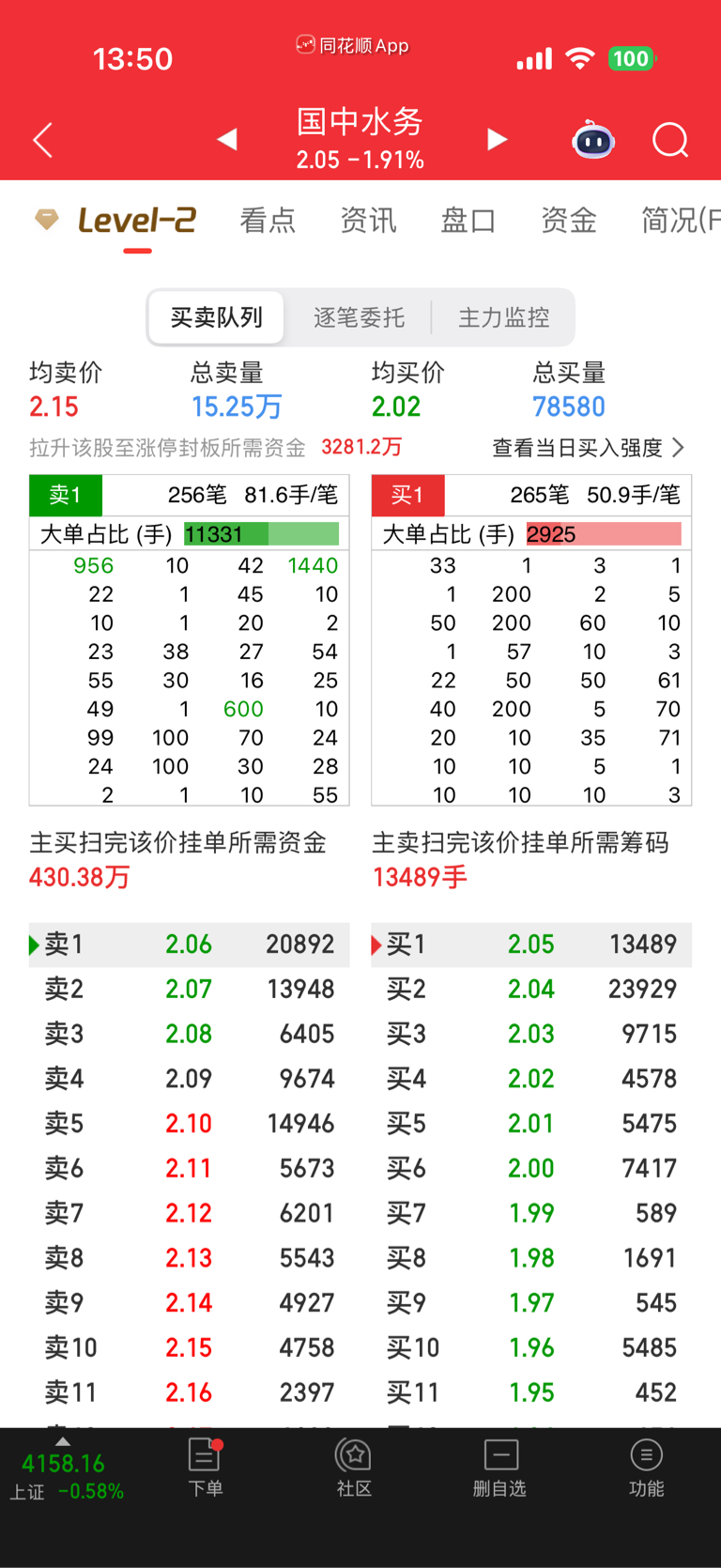 $国中水务(SH600187)$ 全是大单挂在前面出的