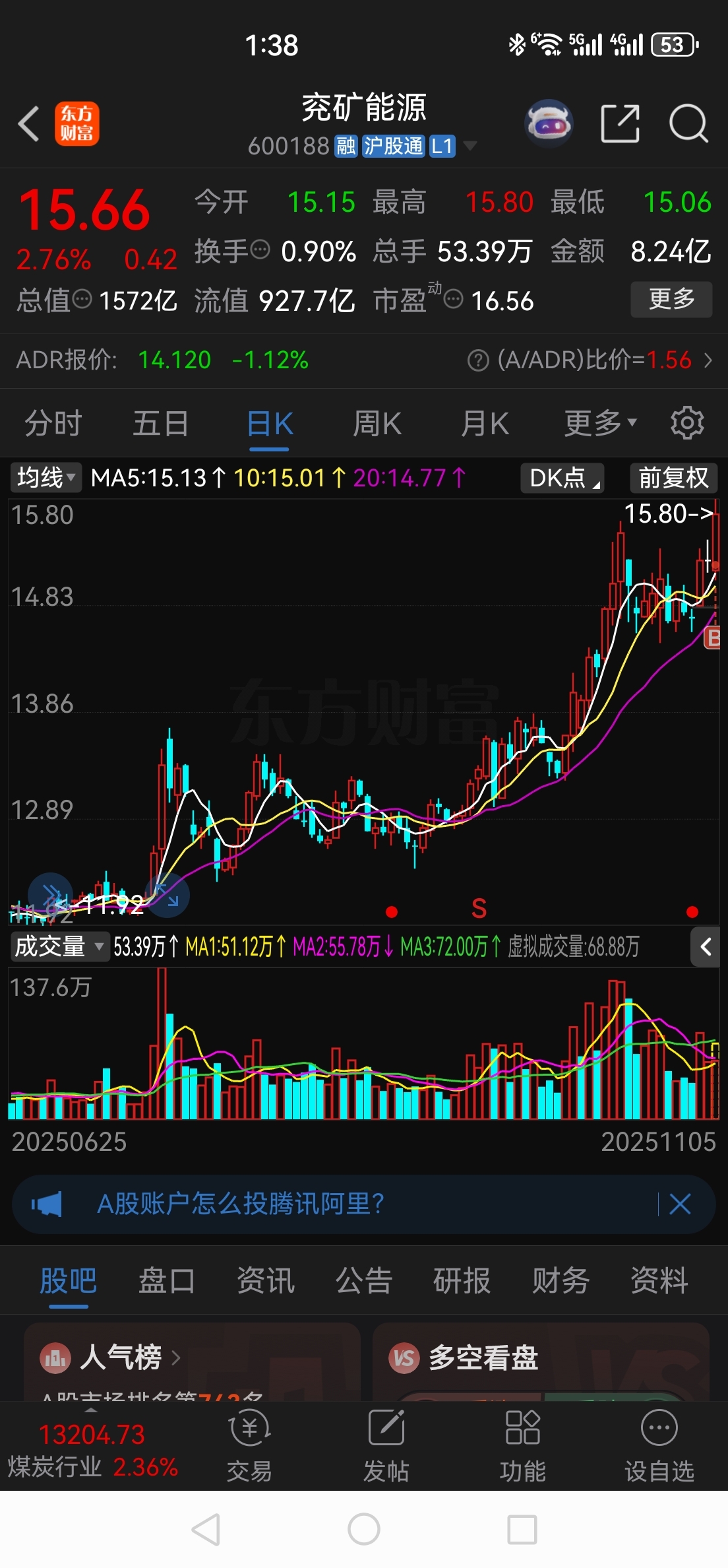 $兖矿能源(SH600188)$ 明天别埋我啊,我就挣个盐巴钱。