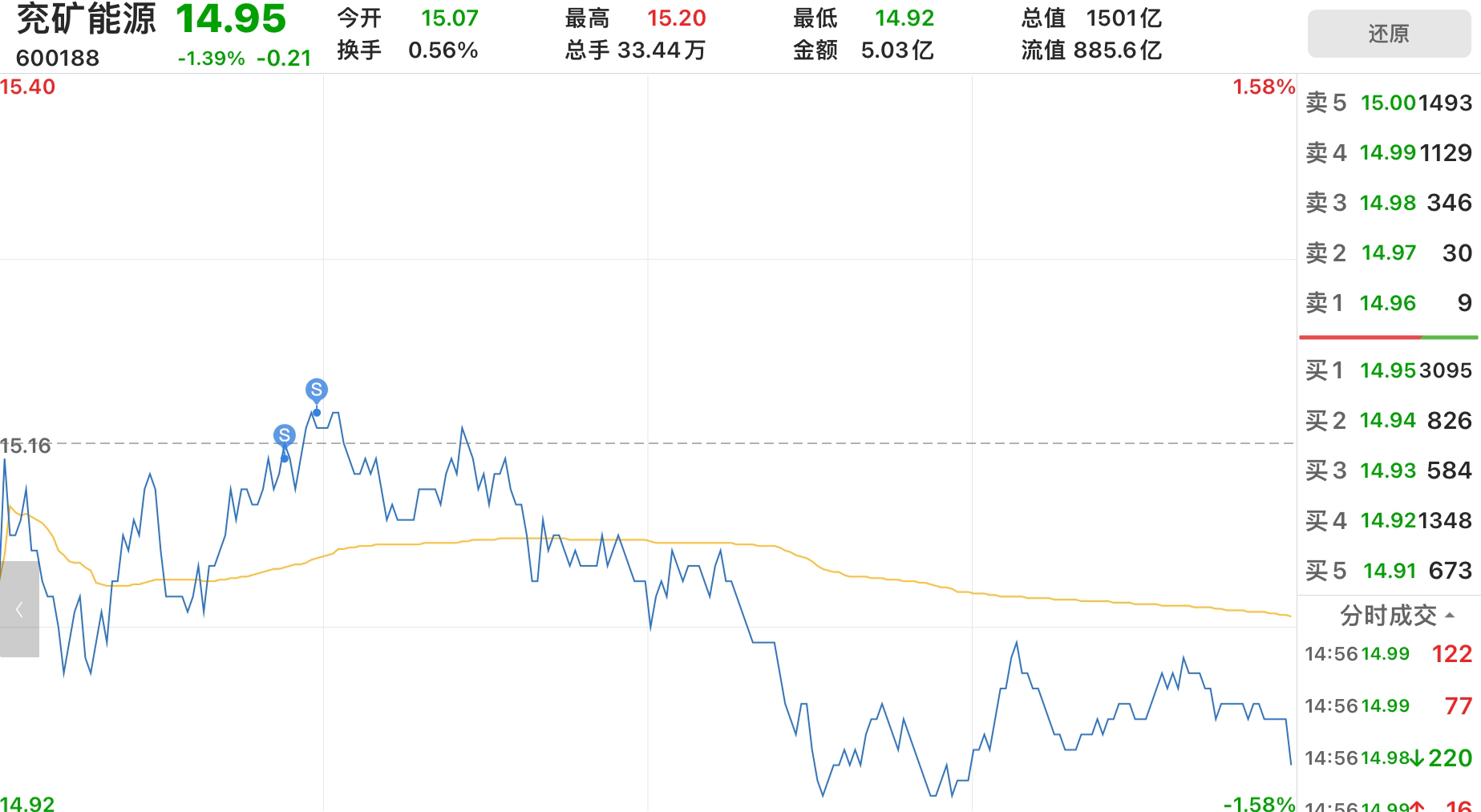 $兖矿能源(SH600188)$ 昨天进的早上赶紧出了主力太坏一点利润都不给