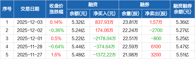 兖矿能源:融资净买入837.93万元,融资余额5.32亿元(12-03)