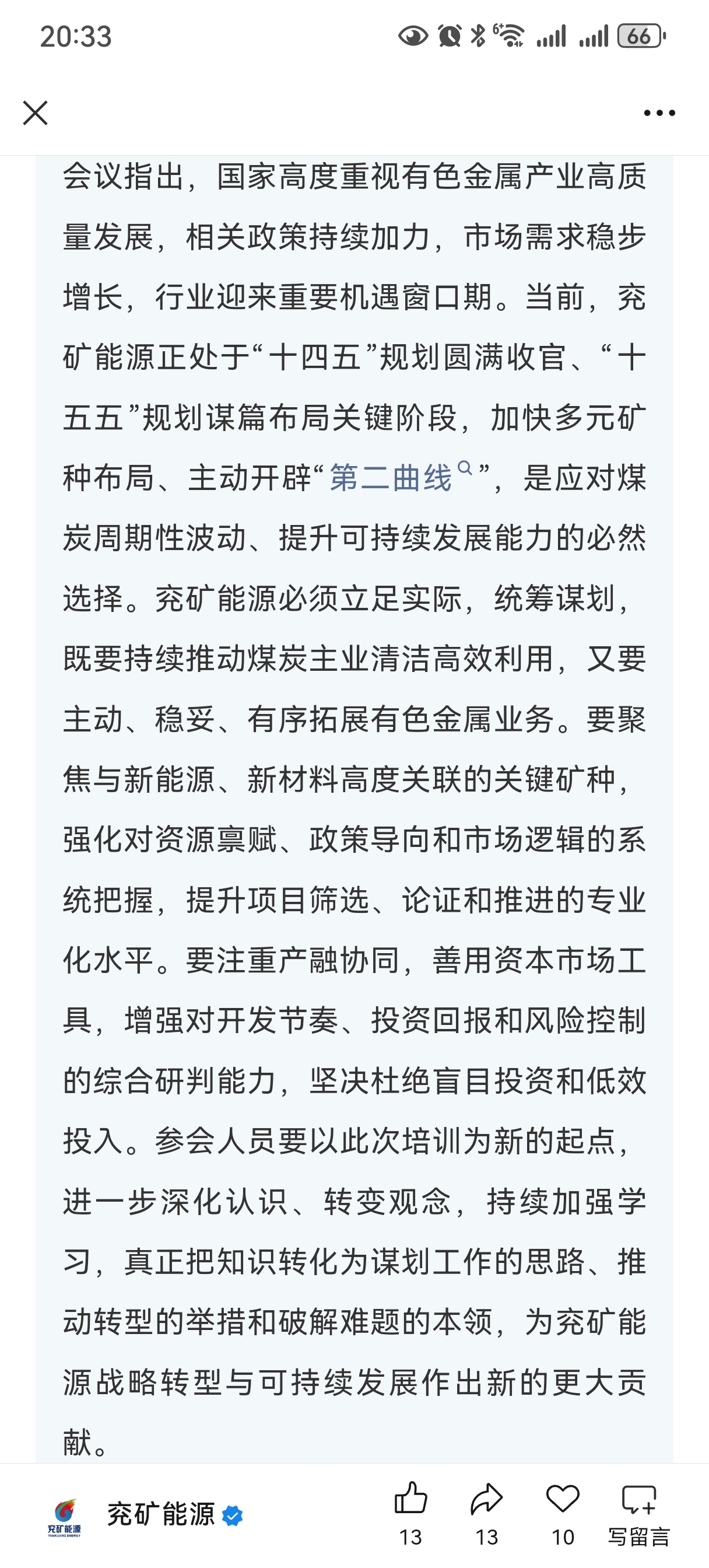 有色的第二曲线未来值多少钱?按现在的估值,再造一个兖矿问题不大吧。加快进度吧,很