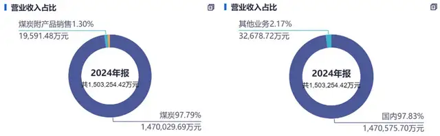 而晋控走的则是“单点爆破”路线,其97.89%的营收都来源于动力煤业务,几乎不搞别的煤种,也不涉足煤化工。地域上的战场也是高度集中,97.83%的营收来自国内,且煤质主打低硫、低灰、高发热量,专供电力、水泥、建材等行业。2025年前三季度,其商品煤销量2085.64万吨,实现营收88.19亿元,几乎全靠内需支撑。这种策略虽然省心,但抗风险能力天然弱于业务多元、市场全球化的兖矿。