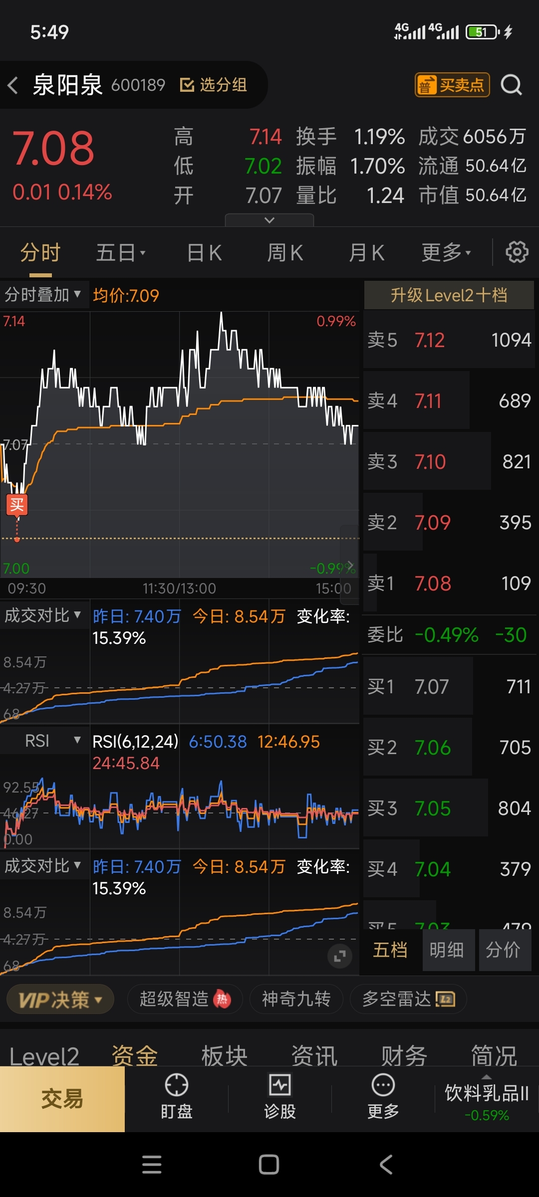 $泉阳泉(SH600189)$ 7.02买进来的,7.53卖