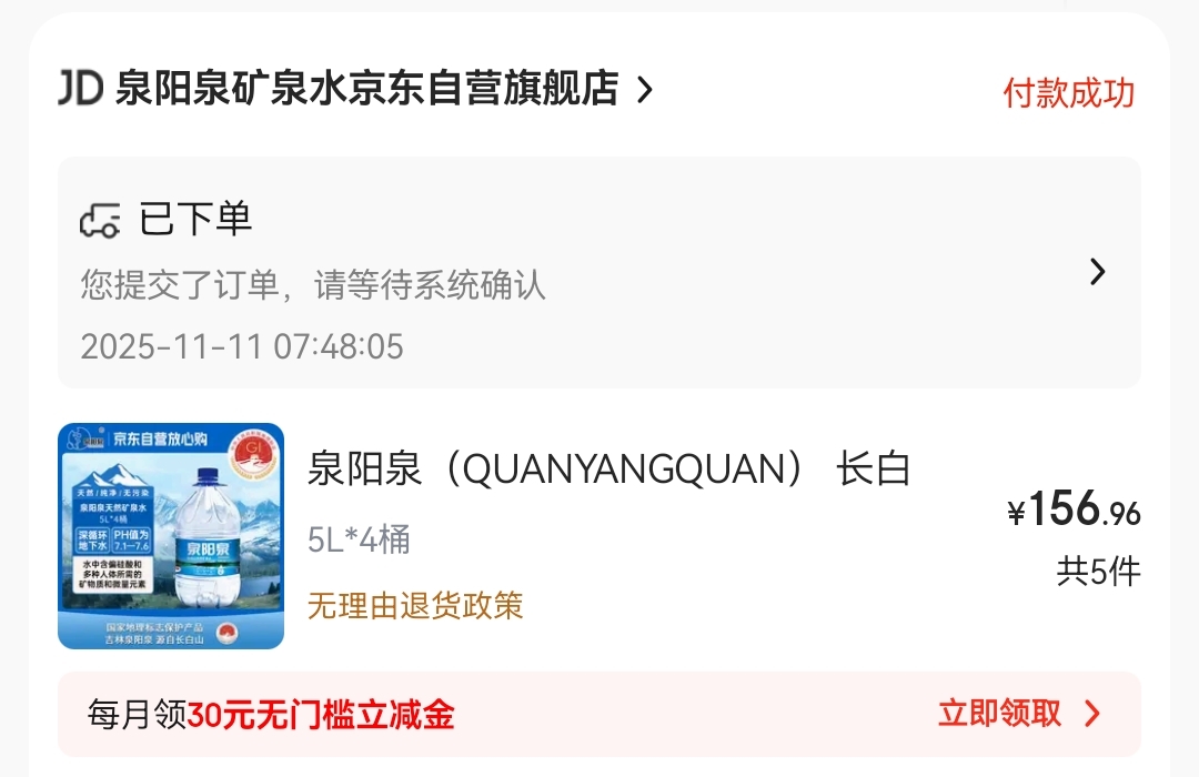 泉阳泉真正股东。X东,特价,比平时便宜一半。够喝两个月了。