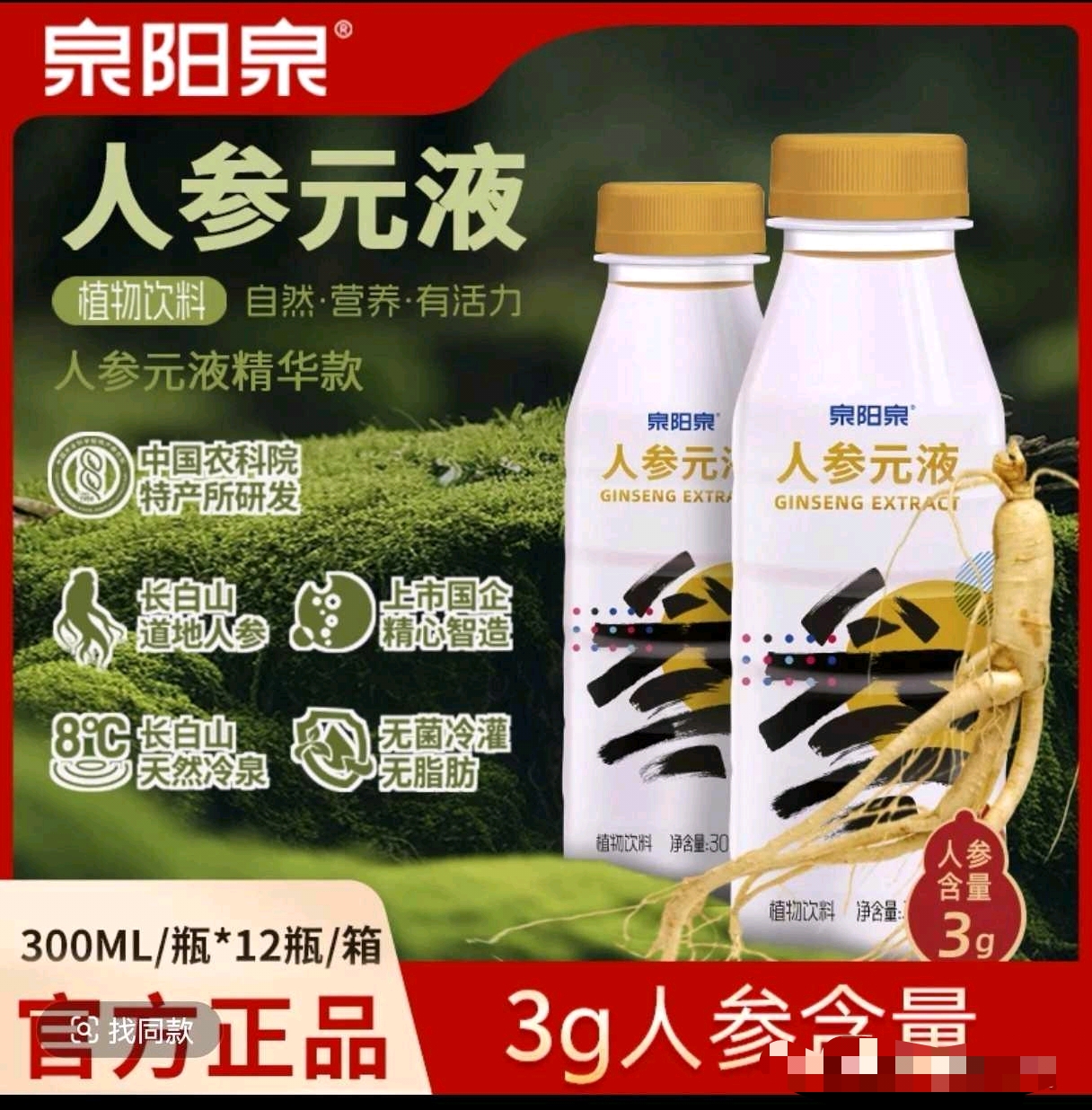 泉阳泉全是高质量健康饮品,水就不用说了世界级黄金水源地,全国最优的泉眼。人参元液