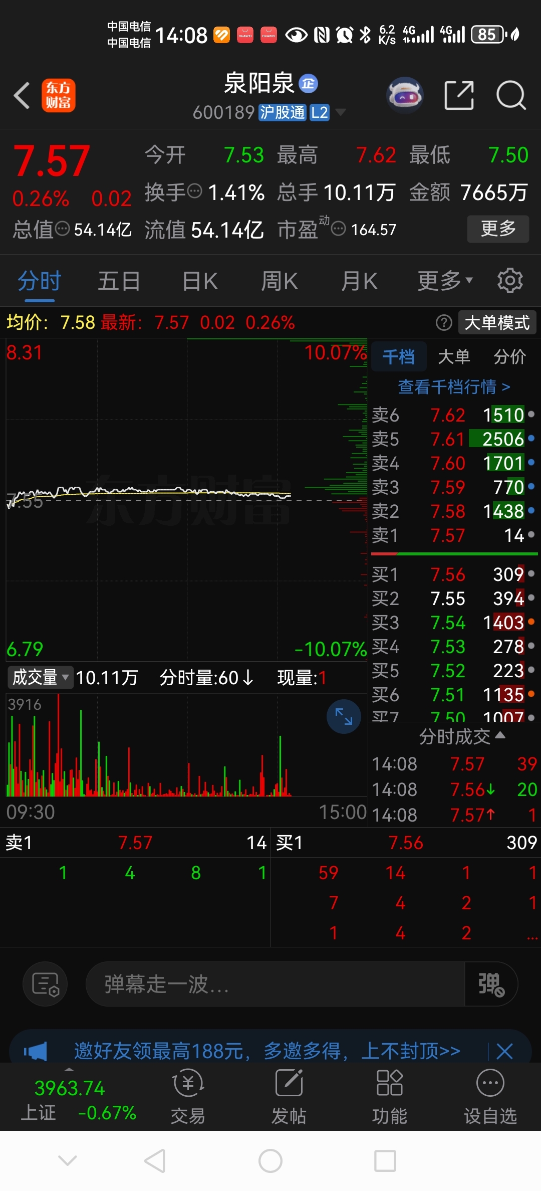 $泉阳泉(SH600189)$ 一条直线,这个生命体征还好吗?