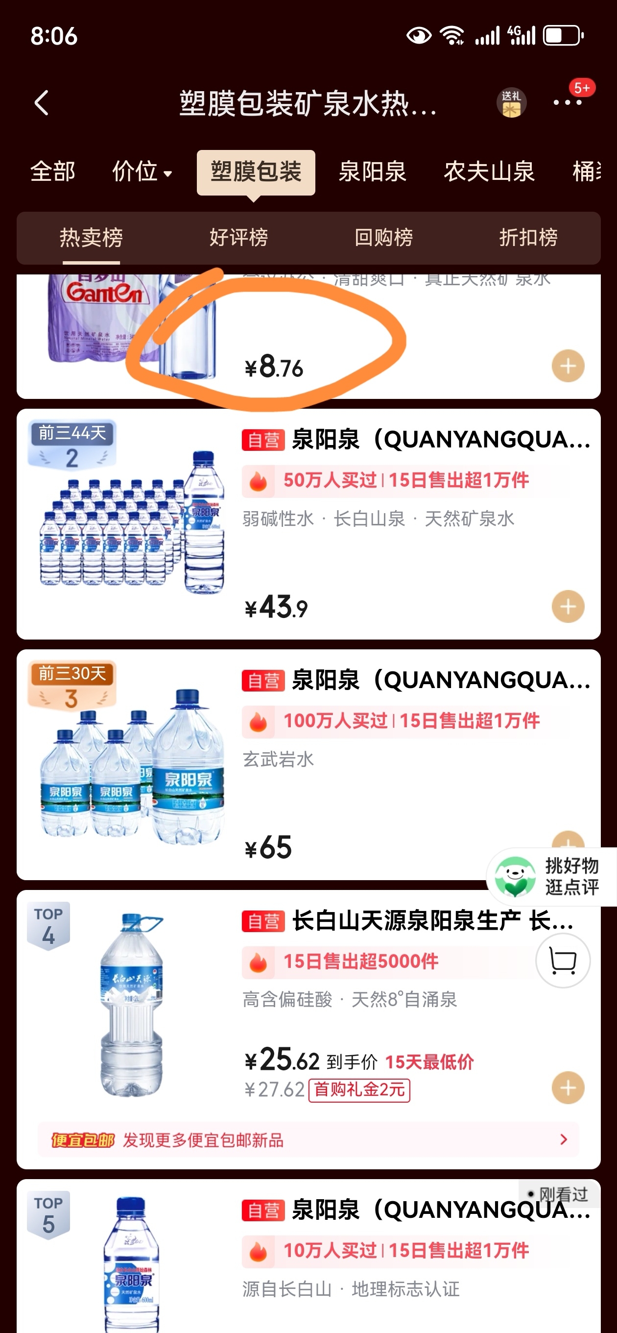 真要成为水中茅台泉阳泉了,塑料瓶矿泉水京东总榜前五泉阳泉占了4个!