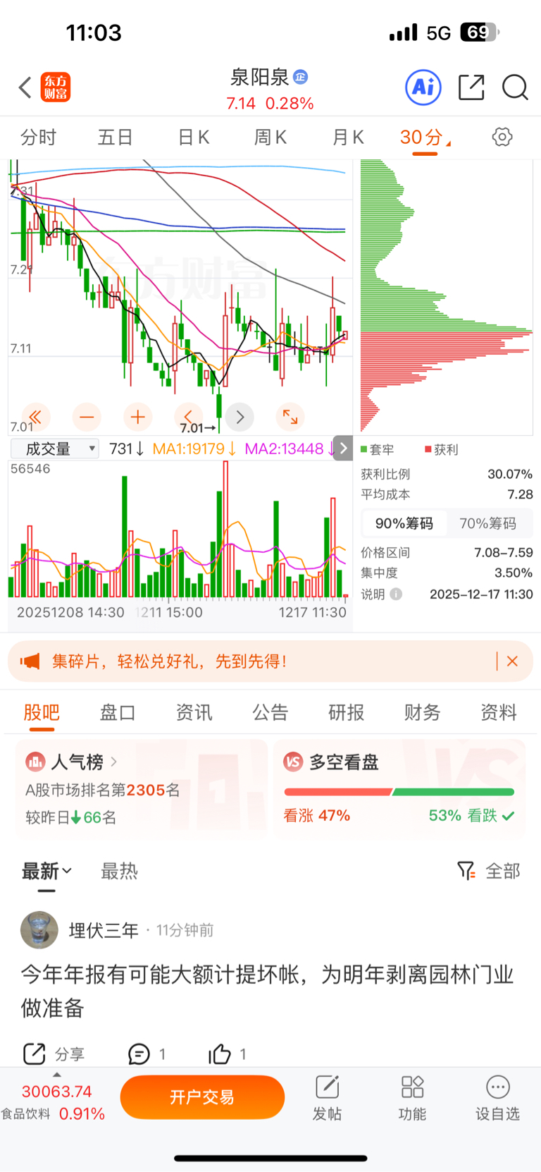 $泉阳泉(SH600189)$ 看骗子泉30分钟这走势 硬不硬