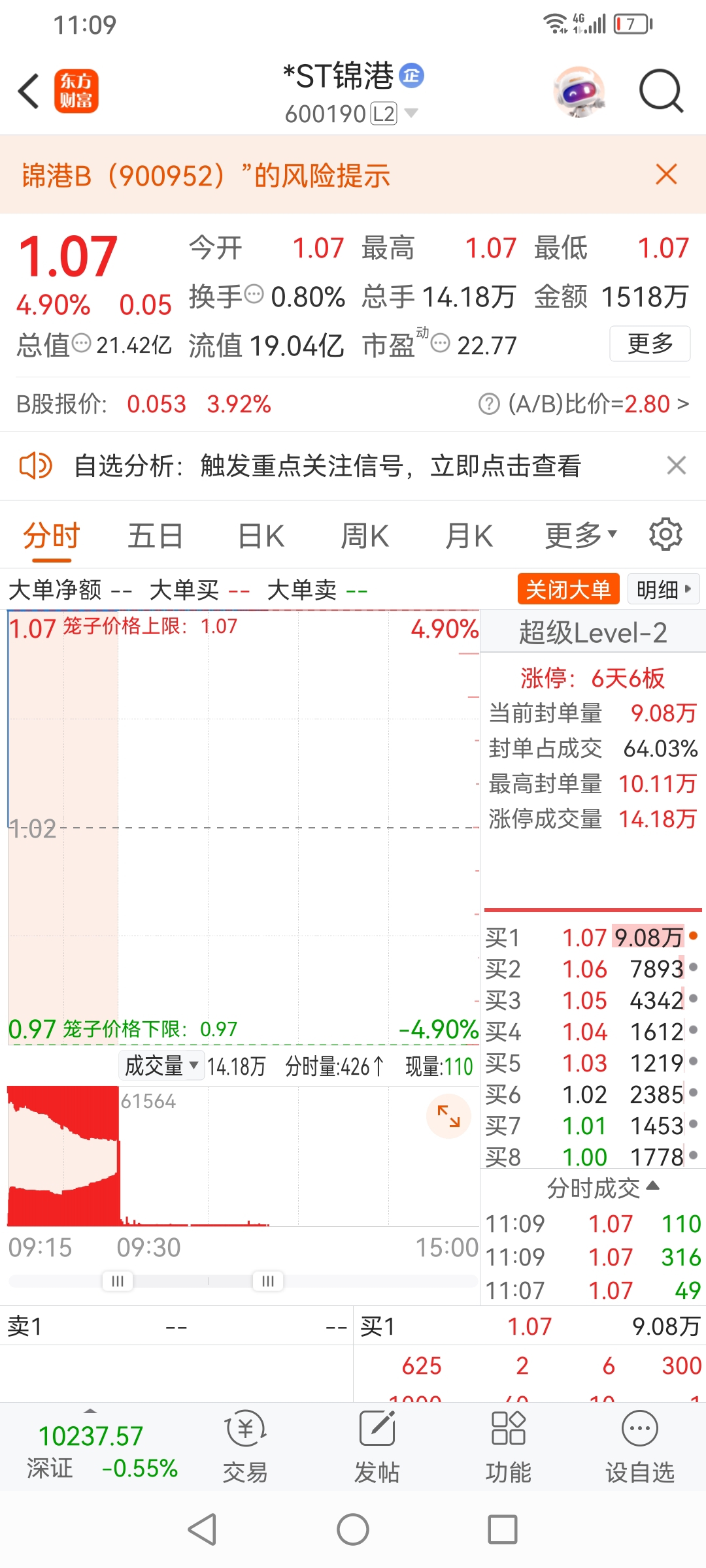 $*ST锦港(SH600190)$ 军哥,st,追求翻倍,涨停。#炒股日记#