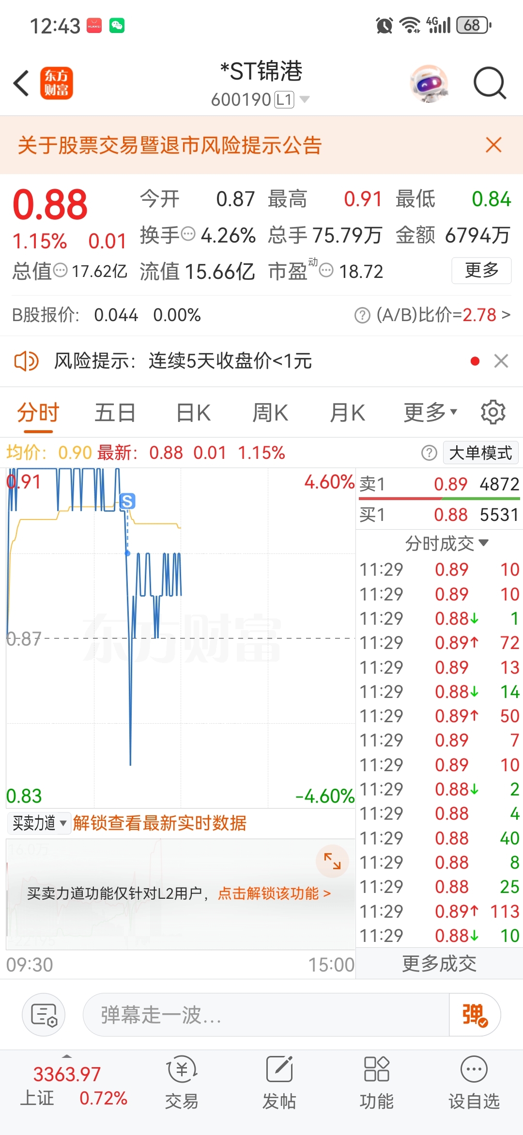 $*ST锦港(SH600190)$ 今天心脏受不了了,小赚30块出去了,一天生活费又到手