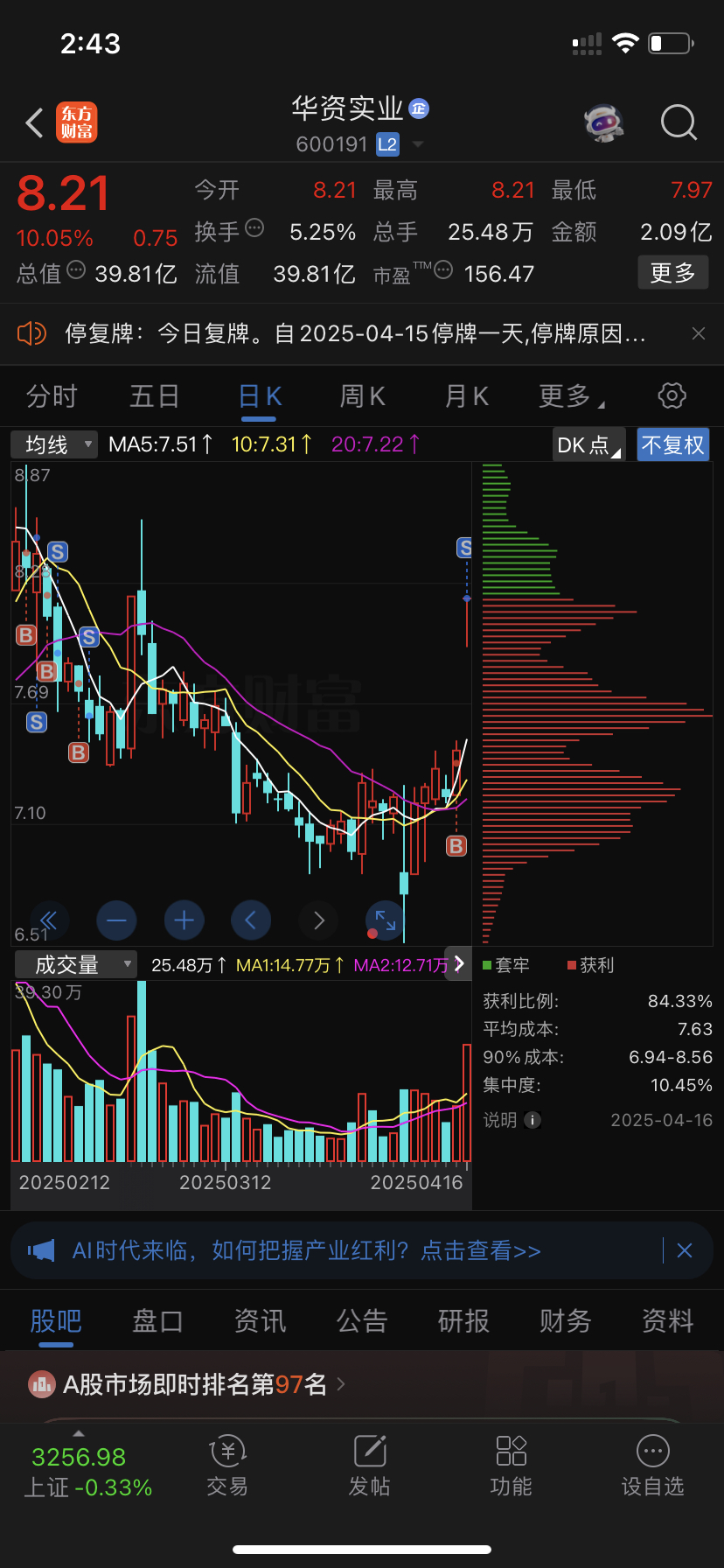 $华资实业(SH600191)$ 留下的发财.感觉卖飞了