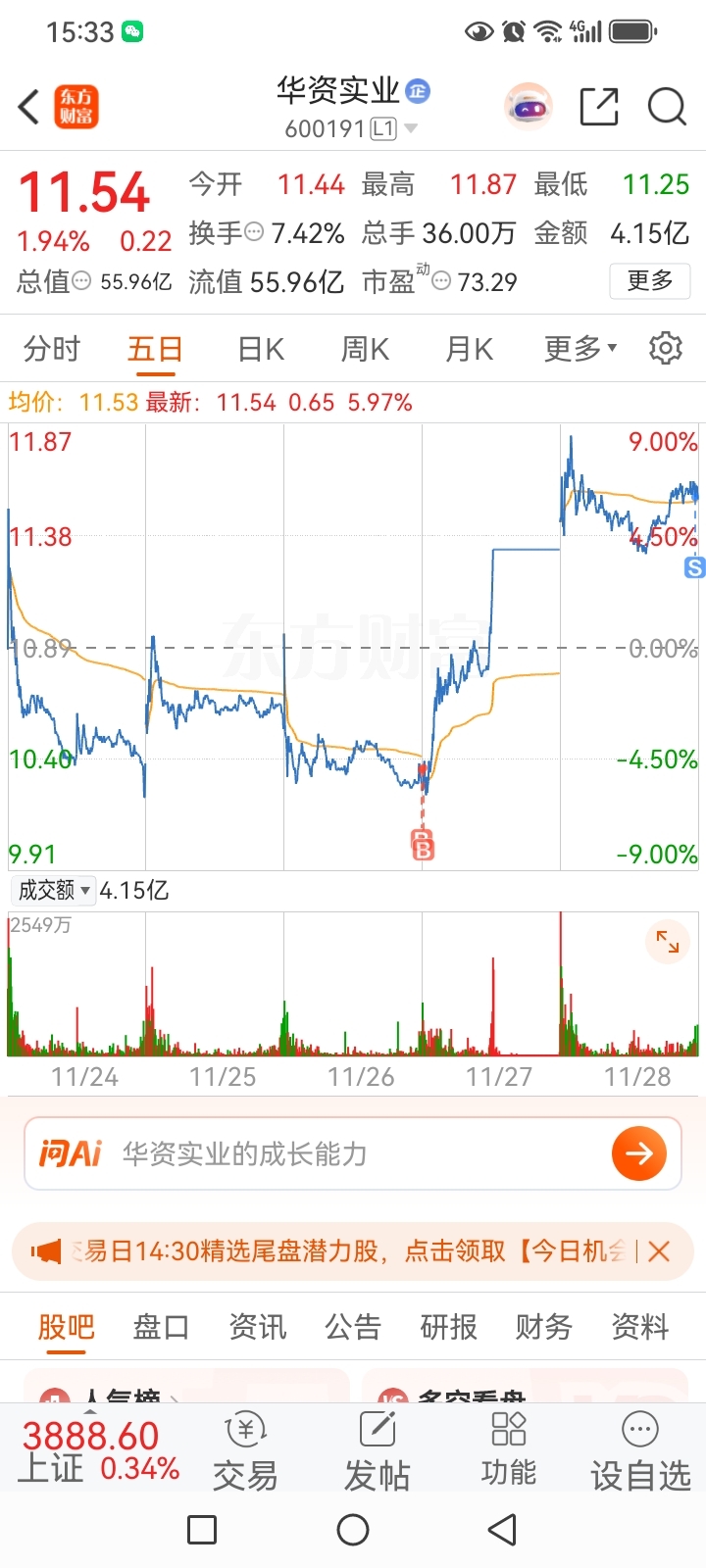 $华资实业(SH600191)$ 留下11个点盈利,吃利息,拜拜。