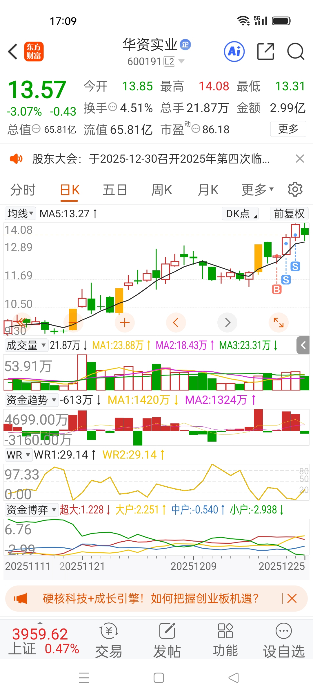 $华资实业(SH600191)$ 主力今天没有出货,疑似震仓洗盘,5日线有支撑,但缩量阴,这个位置可上可下,不确定性较高,所以没有接回,明日早盘再看。
