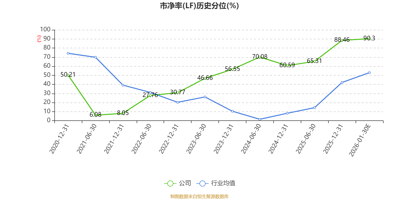 市盈率、市净率为负时,不显示当期分位数,会导致折线图中断。