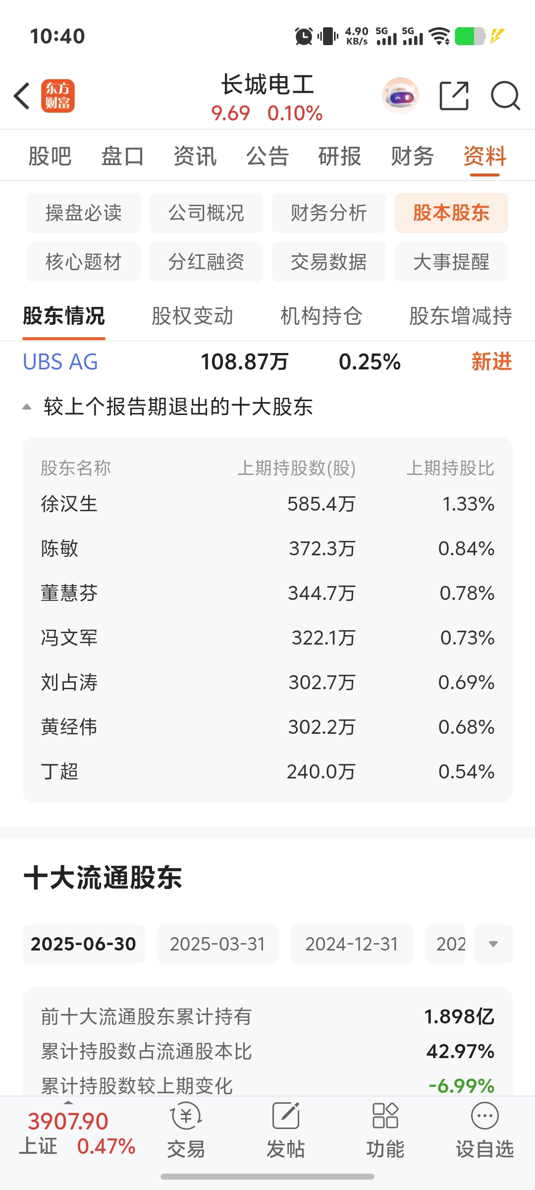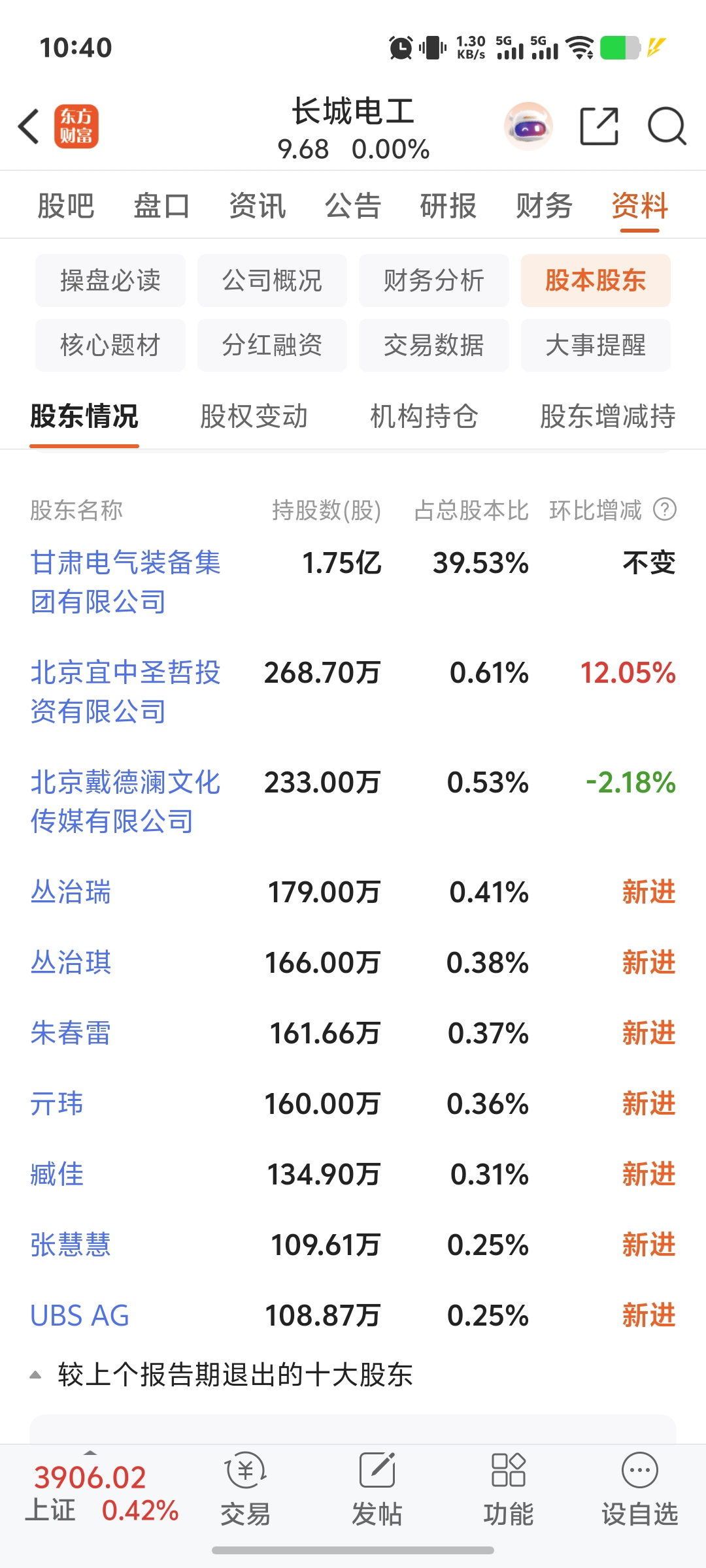 $长城电工(SH600192)$ 看看股东的持股,这样的股票怎么可能会大涨。