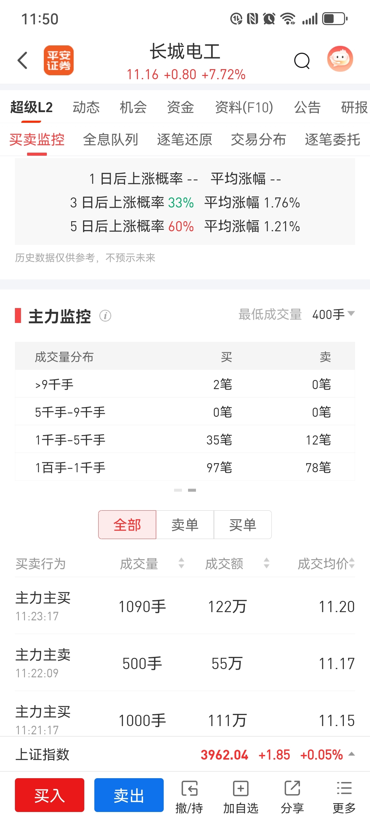 $长城电工(SH600192)$ 主力大笔吃进,开板洗出不坚定筹码,下午强势封板,明天高开6个点预留做多接力空间30分内强势封板,果断向上看4个板!
