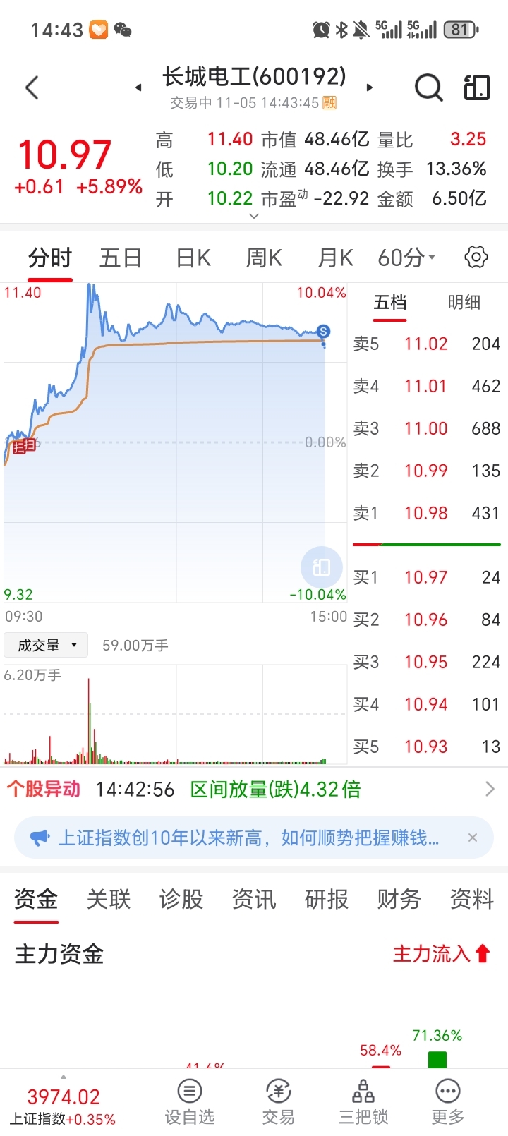 $长城电工(SH600192)$ 还好我跑得快,明天接回来吧