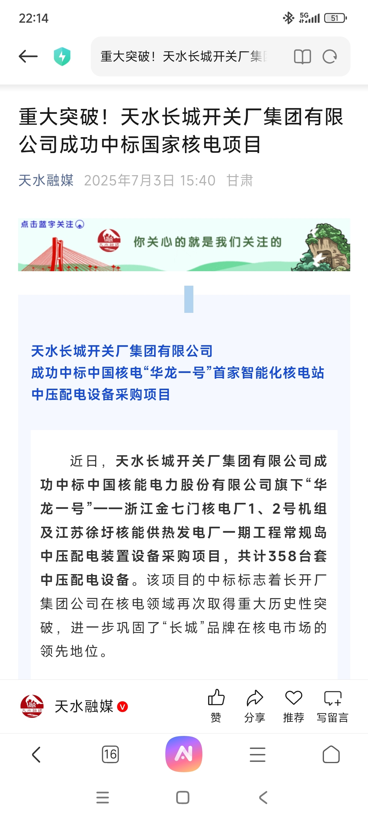 7月份的事,子公司中标核电项目的新闻,居然没有公告,藏的好深啊。