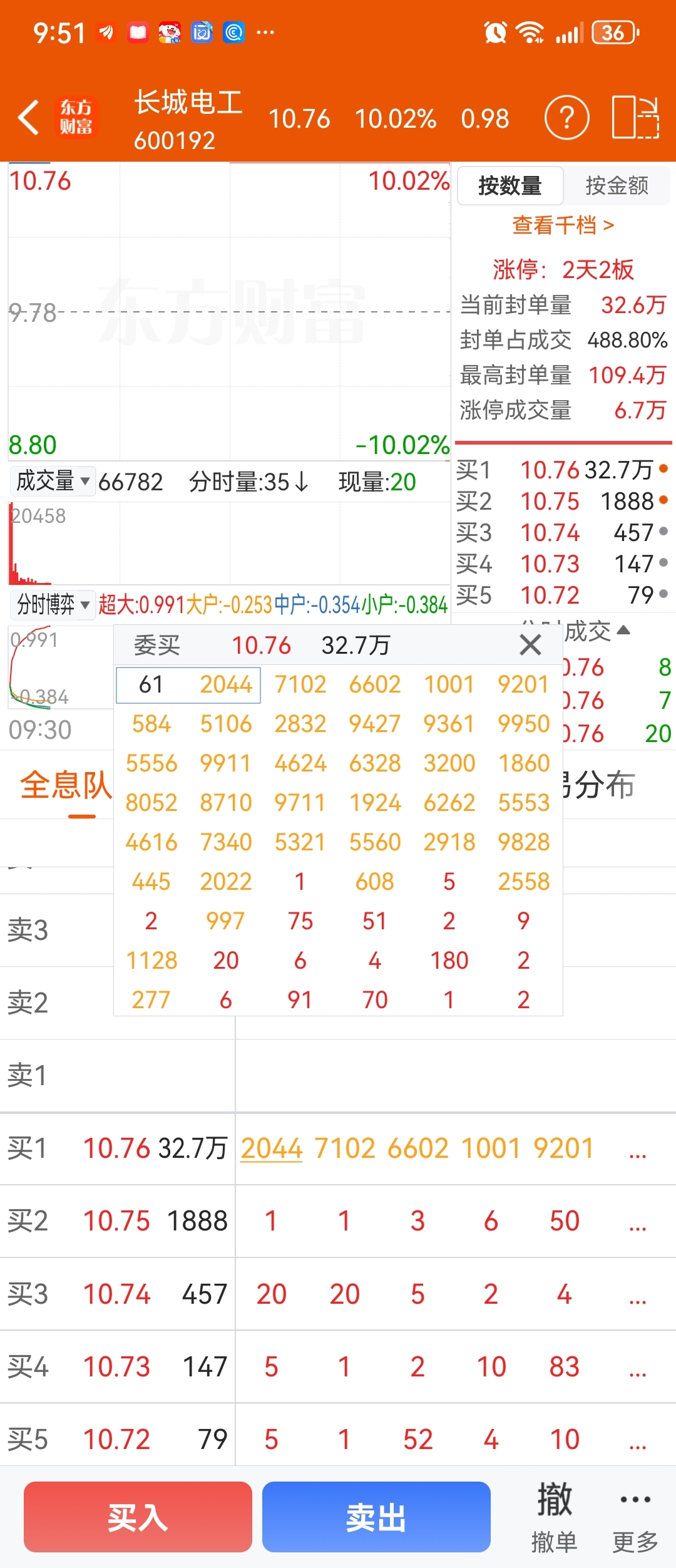 上面的大单接完,下面就全是散单了,看看后续有大单续上吗?