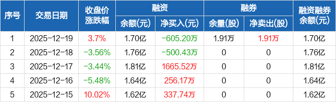 长城电工:融资净偿还605.2万元,融资余额1.7亿元(12-19)