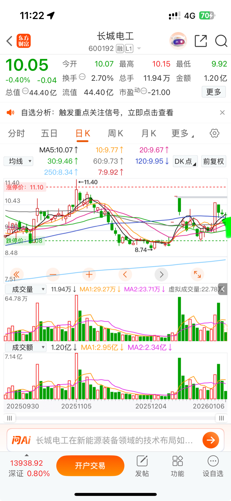 $长城电工(SH600192)$ 明天大盘回调,这走势
