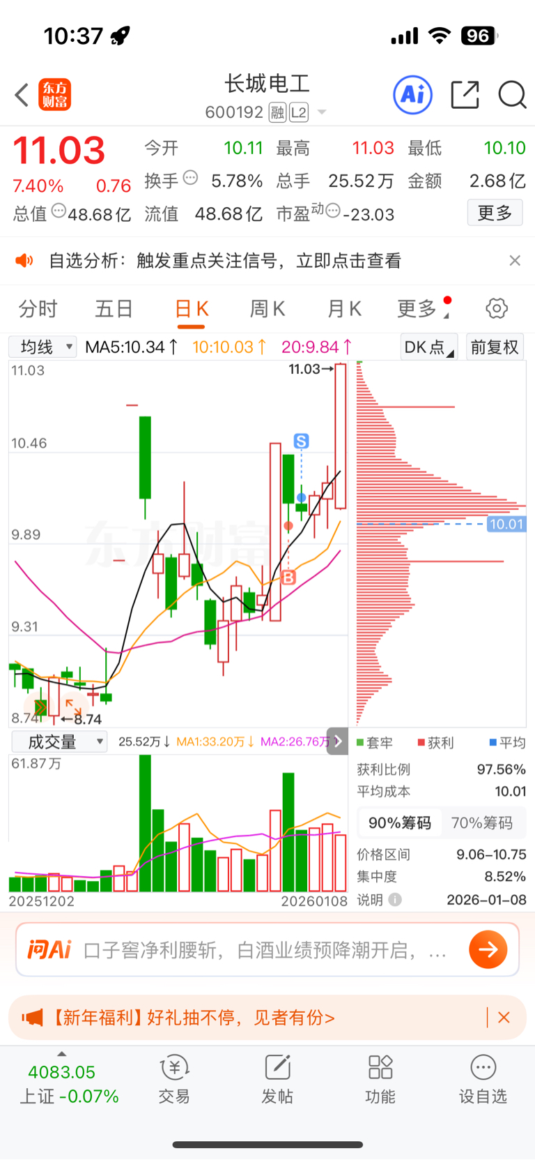 $长城电工(SH600192)$ 昨天想买回来,没买,今天忘记看你了,现在才看你已经涨这么多了
