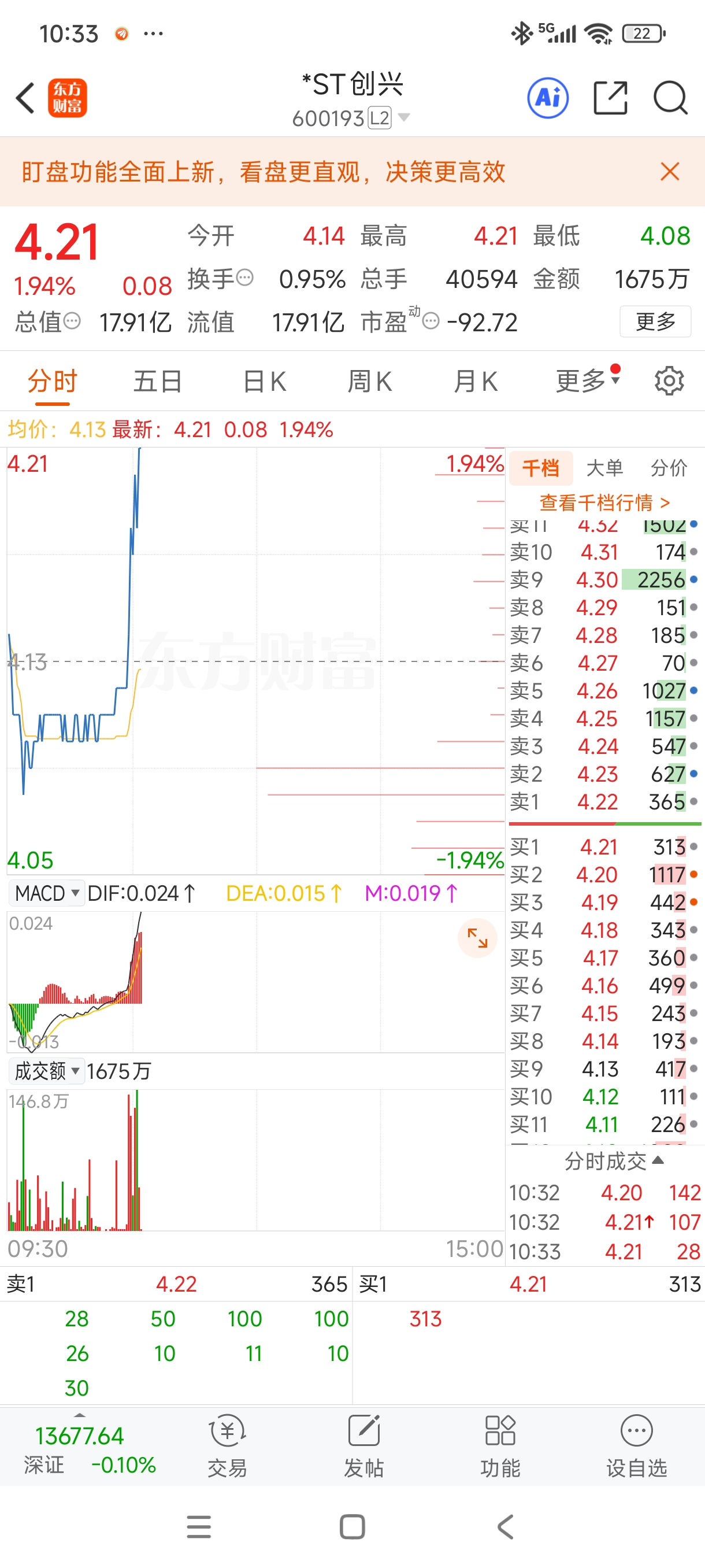 $*ST创兴(SH600193)$ 终于来了,重仓啊,赚钱了