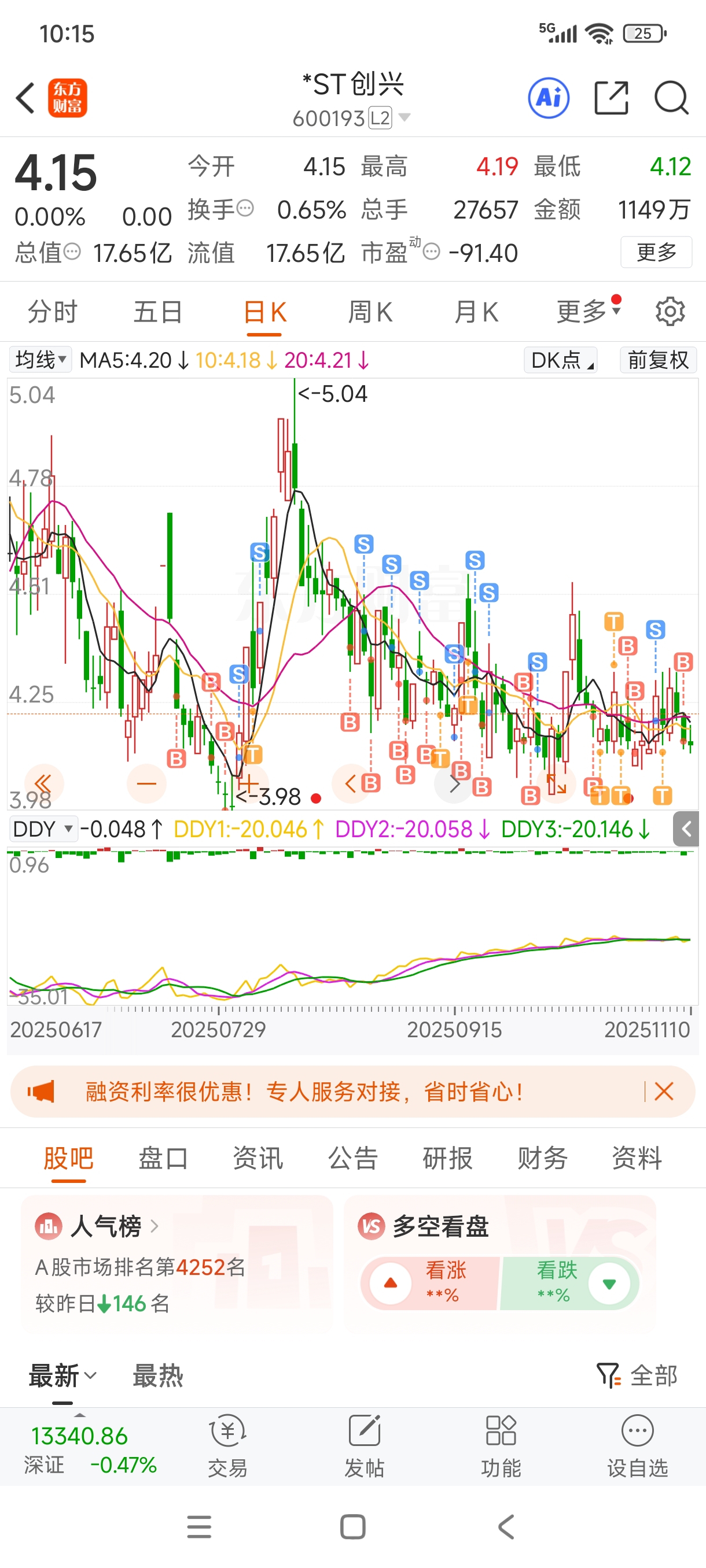 $*ST创兴(SH600193)$ 早盘你拉个锤子啊,还不如砸,我在买点