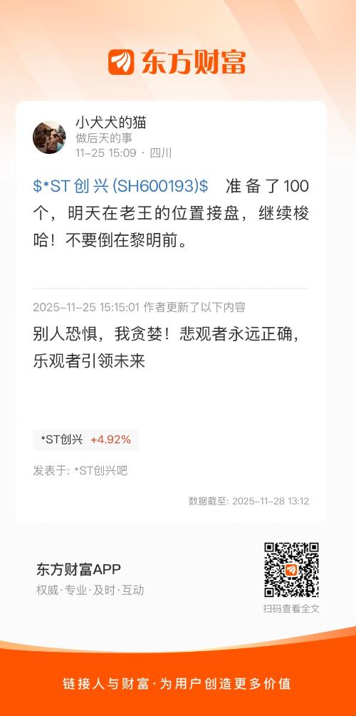 $*ST创兴(SH600193)$  准备了100个,明天在老王的位置接盘,继续梭哈!不要倒在黎明前。