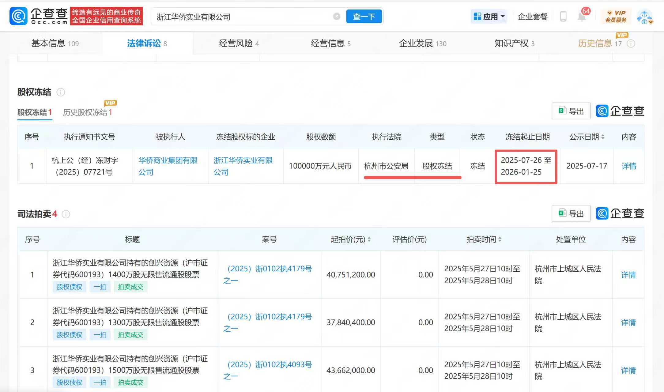 $*ST创兴(SH600193)$ 杭州市公安局冻结浙江华侨的股份在2026年1月25日到期,也就意味着到期前需要处理掉该笔冻结的股权。结合华侨其他的股权(酒便利)将在12月拍卖,创兴的股权近期也会处理,拍卖或者协议转让。