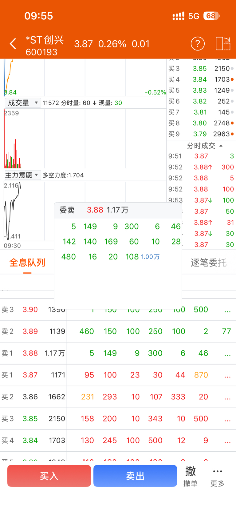 $*ST创兴(SH600193)$ 昨天6000手,今天来了10000手