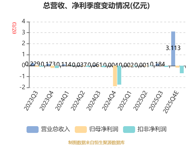 中证智能财讯 *ST创兴(600193)1月30日晚间披露2025年度业绩预告,预计2025年实现营业收入3.1亿元至3.5亿元;归母净利润亏损2100万元至2900万元,上年同期亏损1.93亿元;扣非净利润亏损8000万元至1亿元,上年同期亏损1.93亿元。以最新收盘价计算,市净率(LF)约22.12倍,市销率(TTM)约5.97倍。