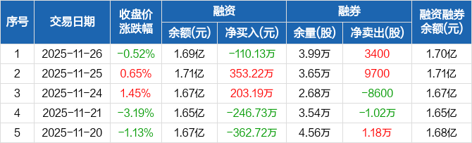 中牧股份:融资净偿还110.13万元,融资余额1.69亿元(11-26)