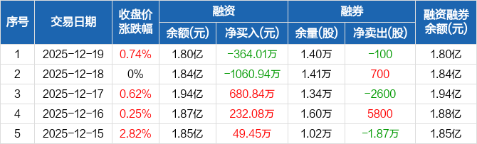 中牧股份:融资净偿还364.01万元,融资余额1.8亿元(12-19)