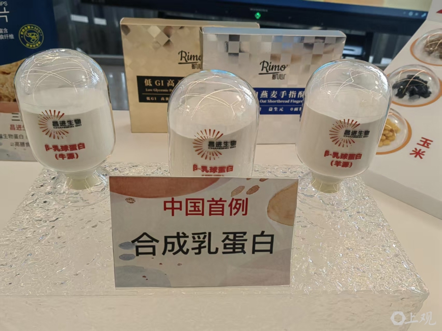 一款以微生物蛋白为原料的虾片最近在盒马等渠道热卖,记者在创新成果展上得以见其真容。昌进生物董事、副总经理熊霞告诉记者,过去想要获得乳清蛋白一般是从牛奶中提取,而他们可以直接用微生物来合成,还可以将微生物作为细胞工厂定向生产高价值的蛋白。相比传统畜牧业,微生物蛋白的生产效率提升了数十倍,且营养价值更高。