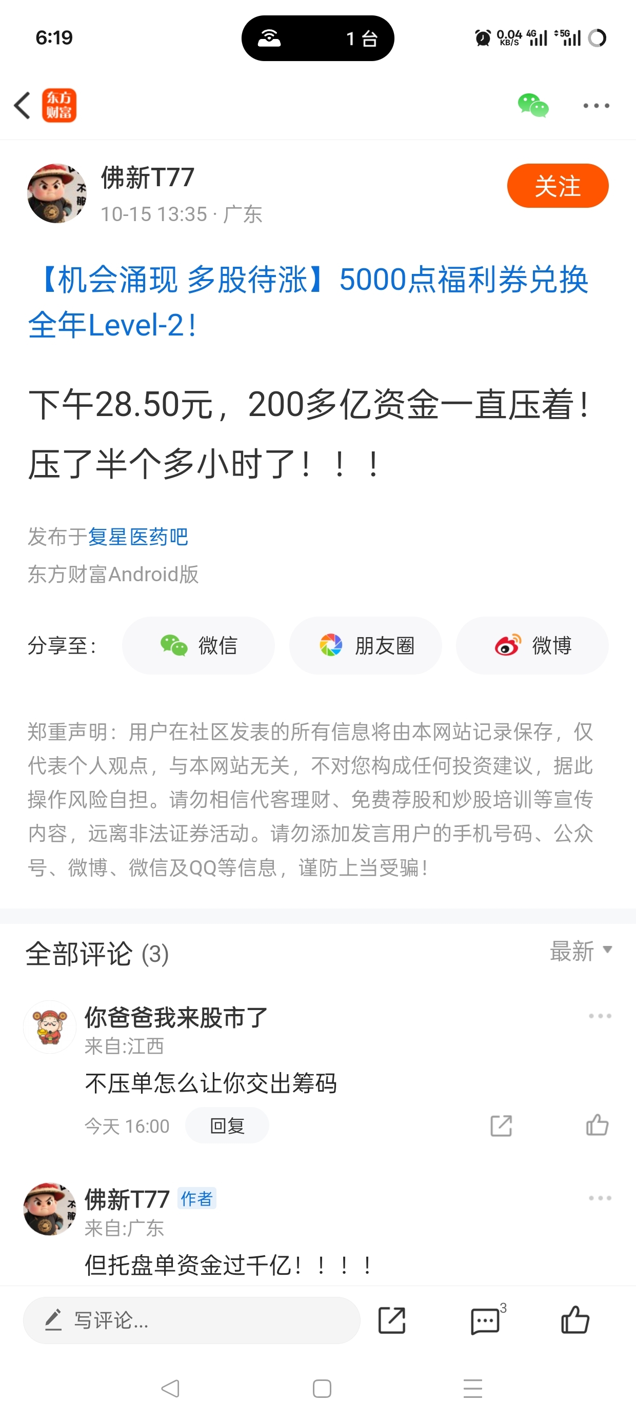 温馨提示: 1.根据《证券法》规定,禁止编造、传播虚假信息或者误导性信息,扰乱证券市场;2.用户在本社区发表的所有资料、言论等仅代表个人观点,与本网站立场无关,不对您构成任何投资建议。用户应基于自己的独立判断,自行决定证券投资并承担相应风险。《东方财富社区管理规定》