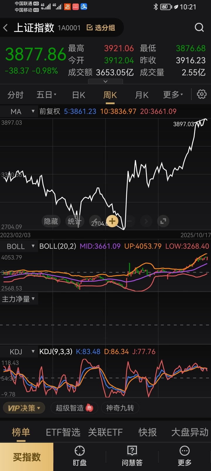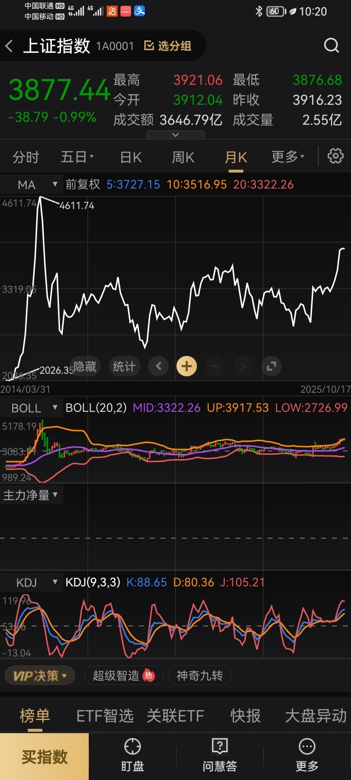 分享下大市指数日线,周线,月线,好像都是掉头下跌的了