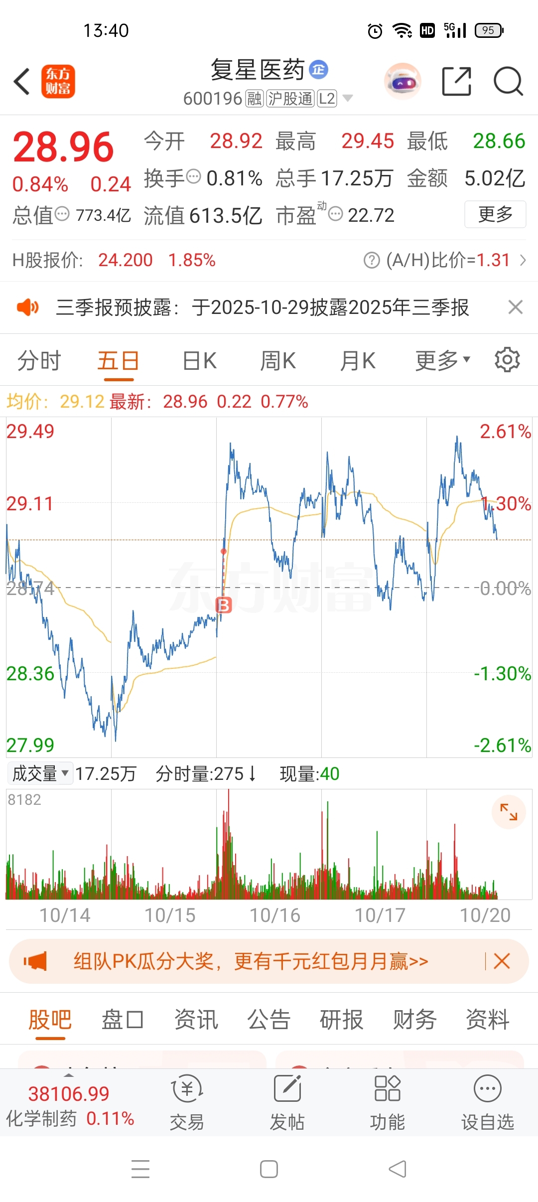 $复星医药(SH600196)$ 天天在我成本线上蹿下跳,周五不管你涨跌都卖了你