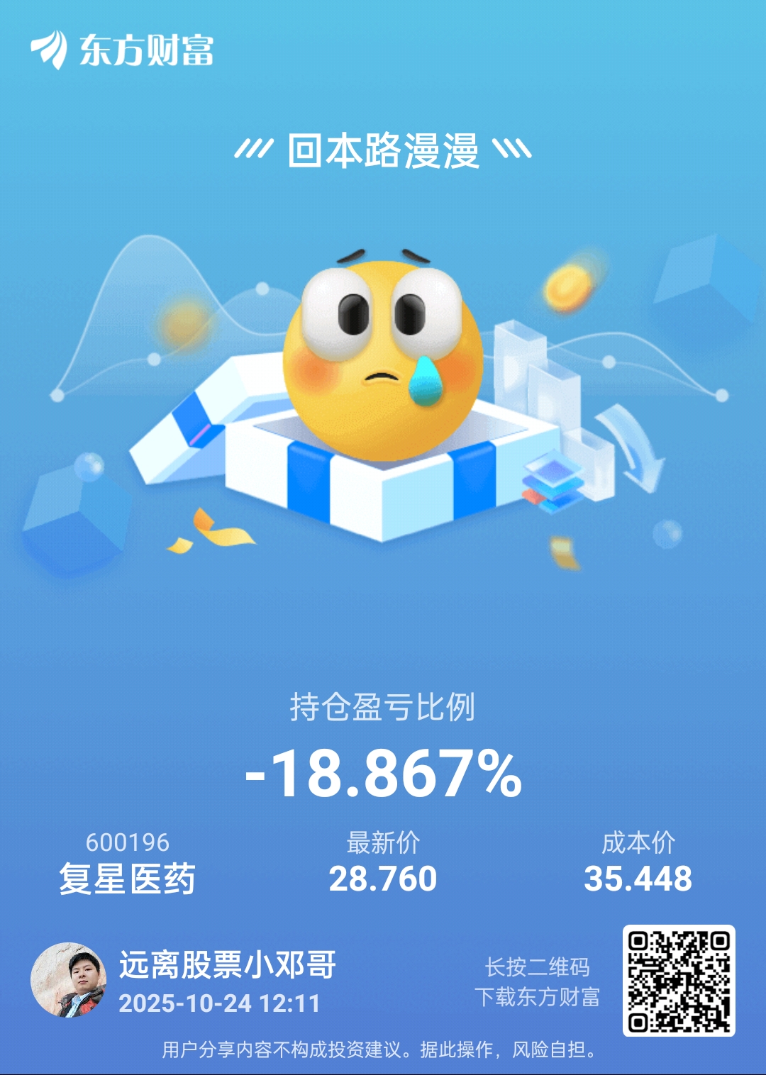 $复星医药(SH600196)$ 不动多久能回本?