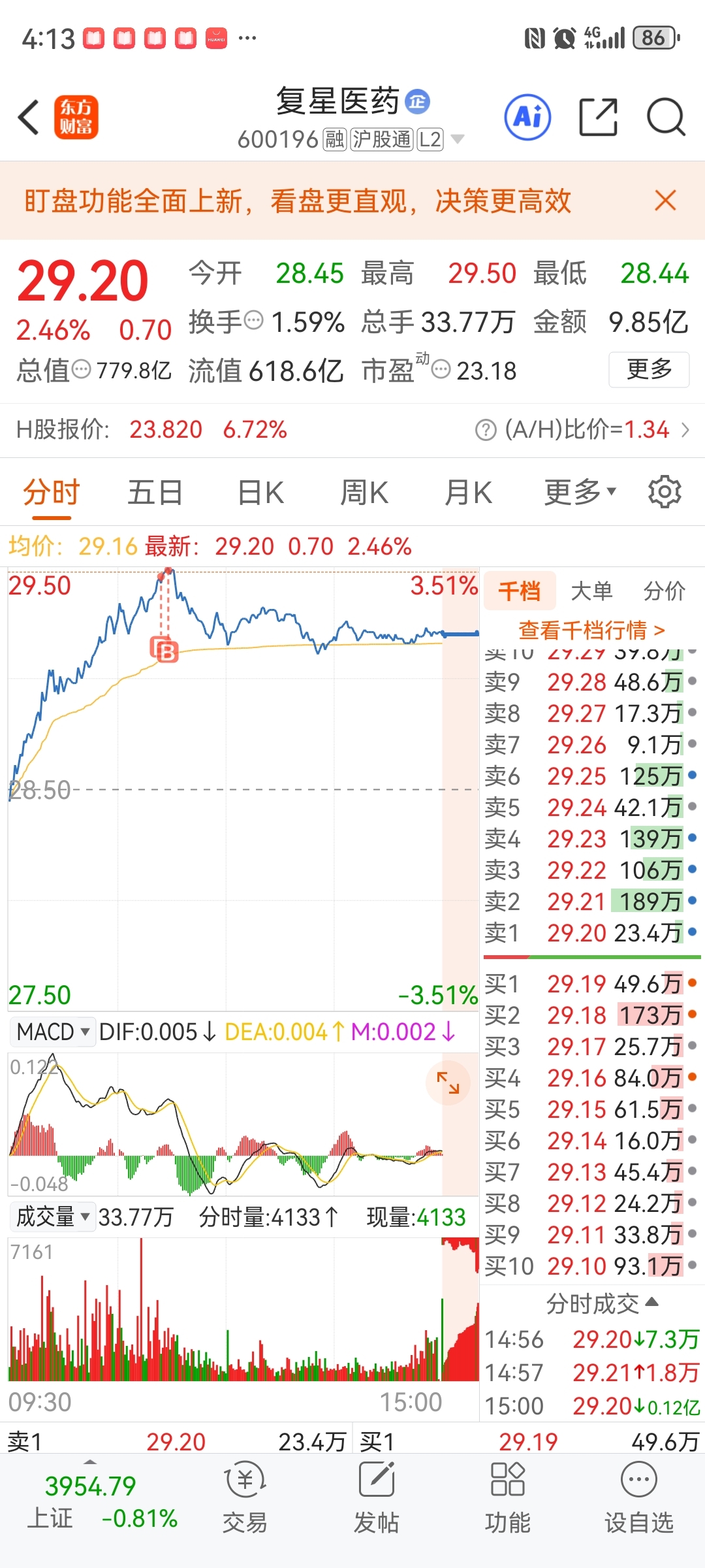 $复星医药(SH600196)$  我把主力洗出去了