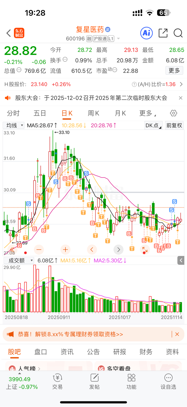 $复星医药(SH600196)$ 我还没走呢,一点不慌,你再不涨我别的要清仓过来了