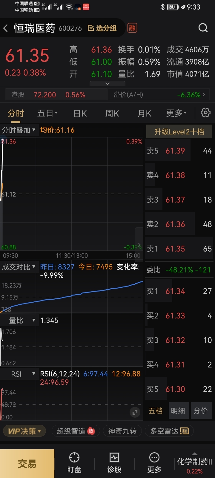 恒瑞医药,复星医药两股票,你们看下两个庄家的不同手法!!!复星这个量化庄家天天不是压单就是大摆托盘单的!!!