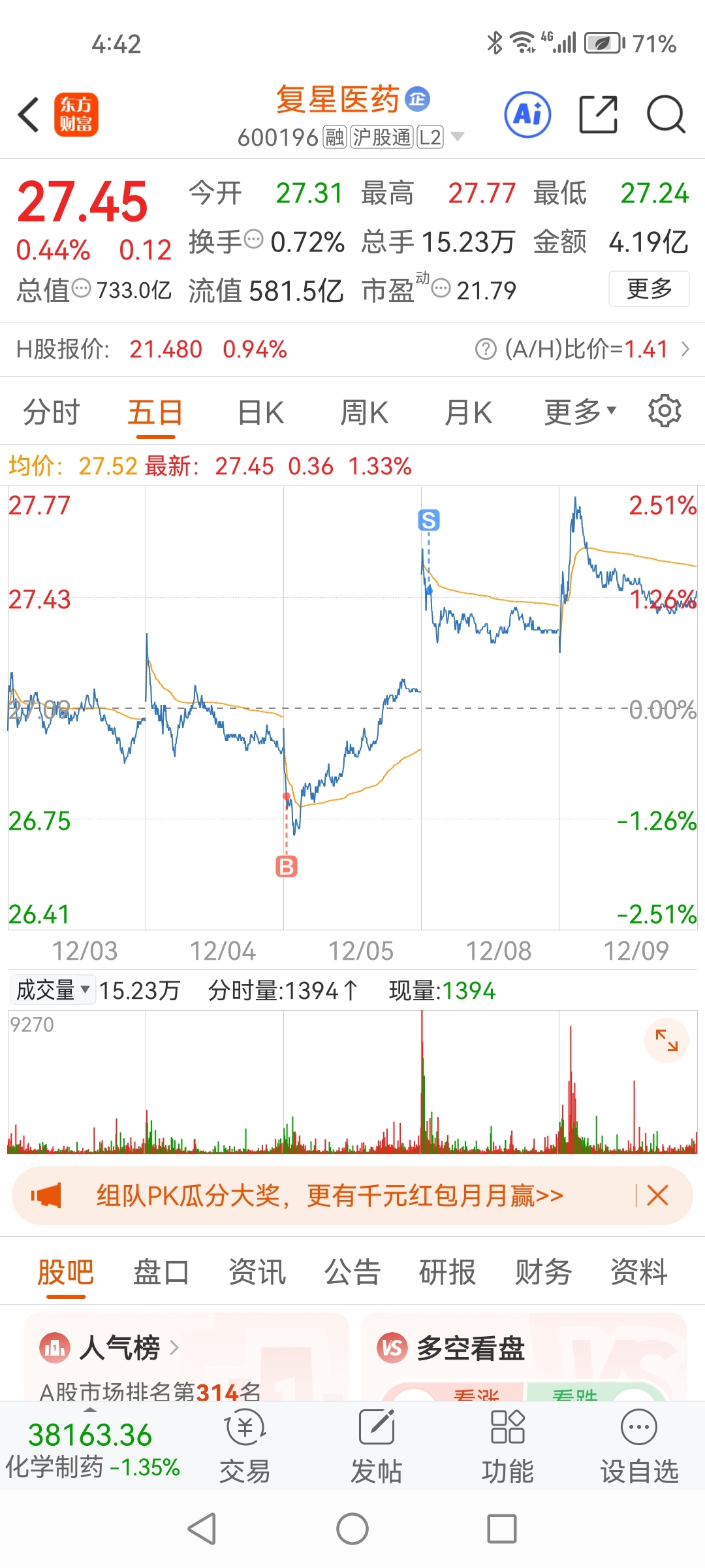 $复星医药(SH6001委托标的:买卖方向:笔记:我前天卖飞了,有复星的希望你们